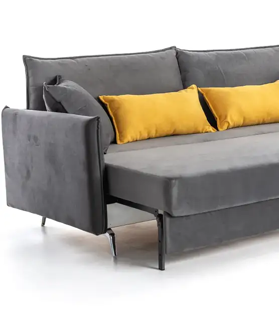 Механизм трансформации легко раскладывается благодаря металлическому синхронизатору, предотвращающему перекосы. Вместительный короб для белья и металлическая хромированная опора с просветом 120мм дополняют функциональность дивана, делая его идеальным выбором для современного дома.