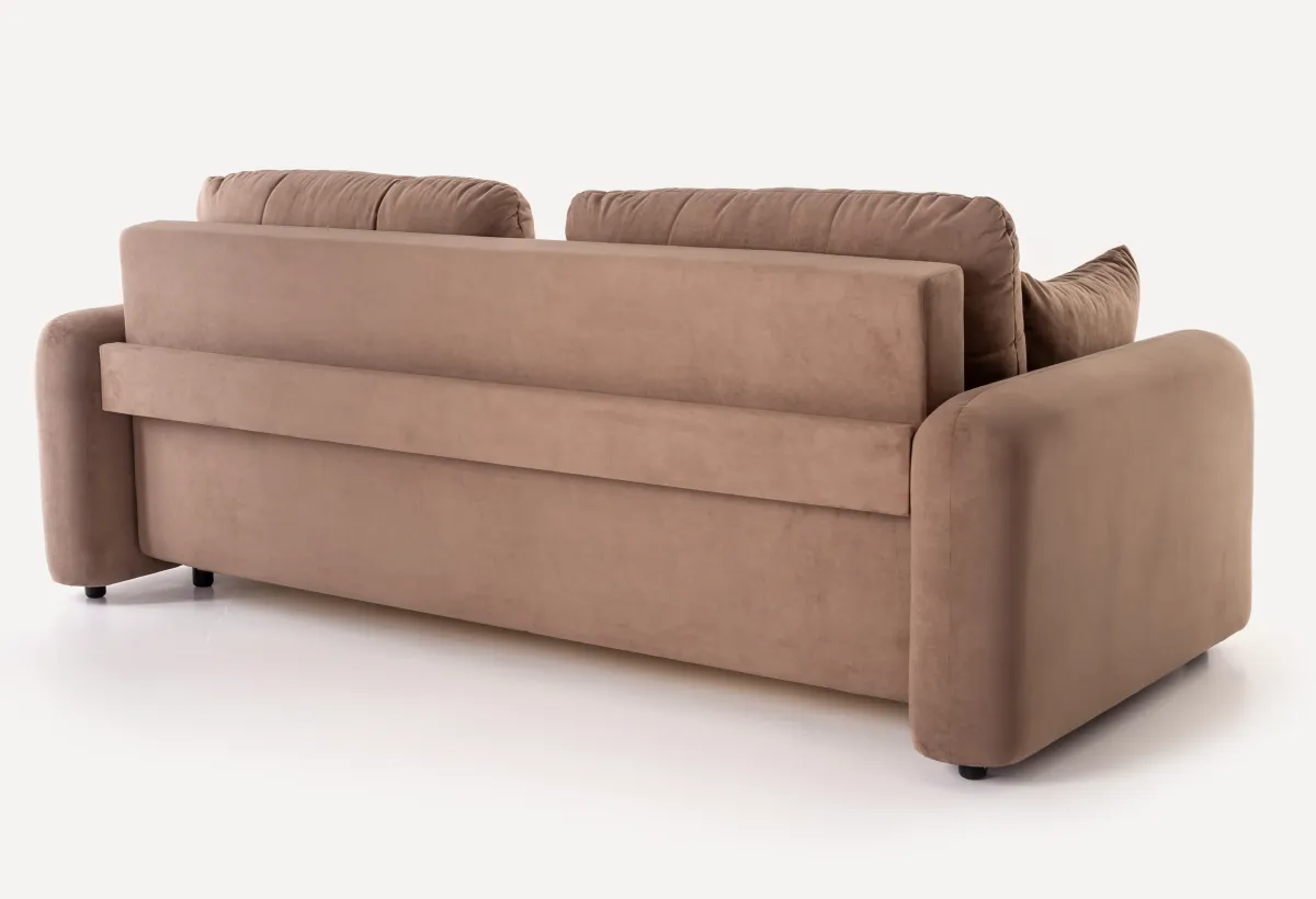 В комплекте с диваном Stone идут две подушки с наполнителем из крошки ППУ, которая не вызывает аллергии и хорошо сохраняет форму. Съемные чехлы на подушках позволяют легко ухаживать за ними, поддерживая чистоту и свежесть. Задний упор служит дополнительной фиксацией подлокотников, обеспечивая стабильность и надежность конструкции.