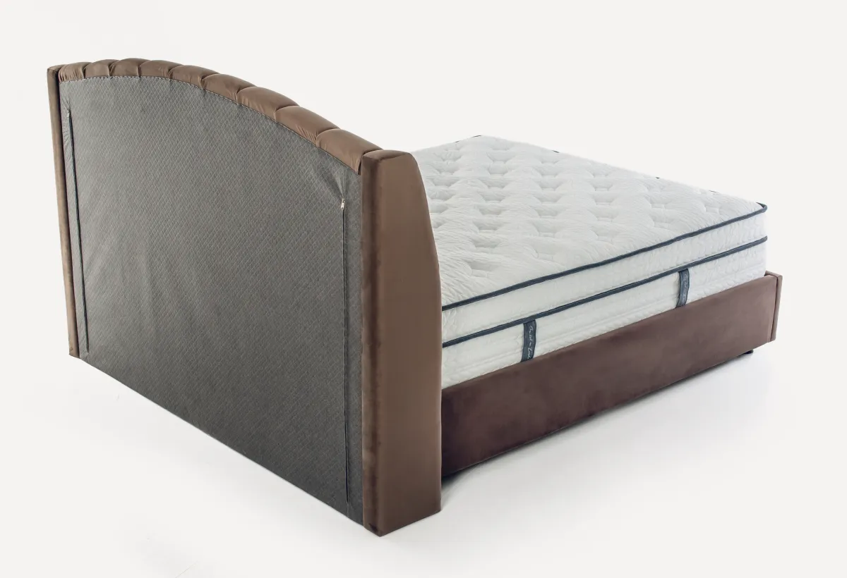 Характеристики кроватиКровать имеет высоту, которая делает её универсальной для матрасов любой высоты, особенно эффектно она смотрится с матрасами выше 25 см. Изголовье оснащено мягкой обивкой, выполненной вручную. Каркас изголовья надежный. Чехол крепится к царгам при помощи ложного канта, благодаря чему скобы остаются незаметными. Обратная сторона изголовья выполнена из прочного нетканого материала, что также добавляет эстетичности.