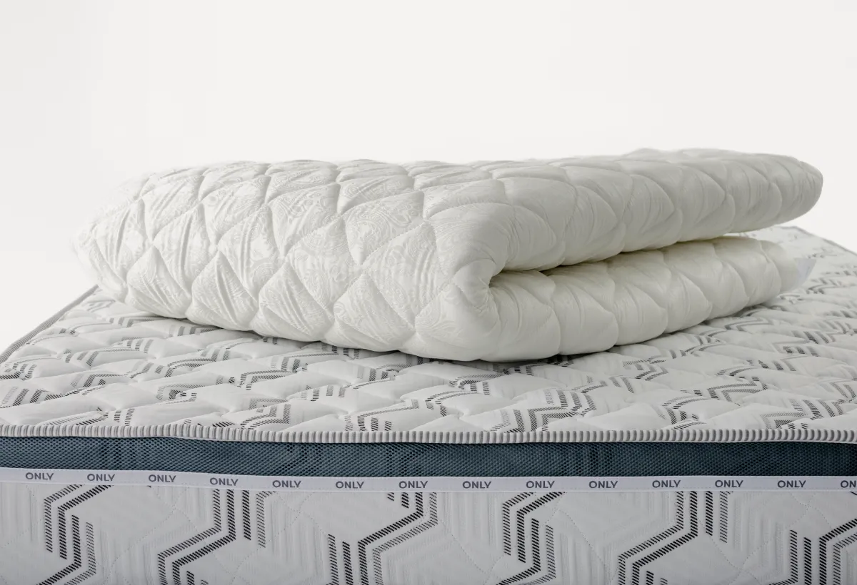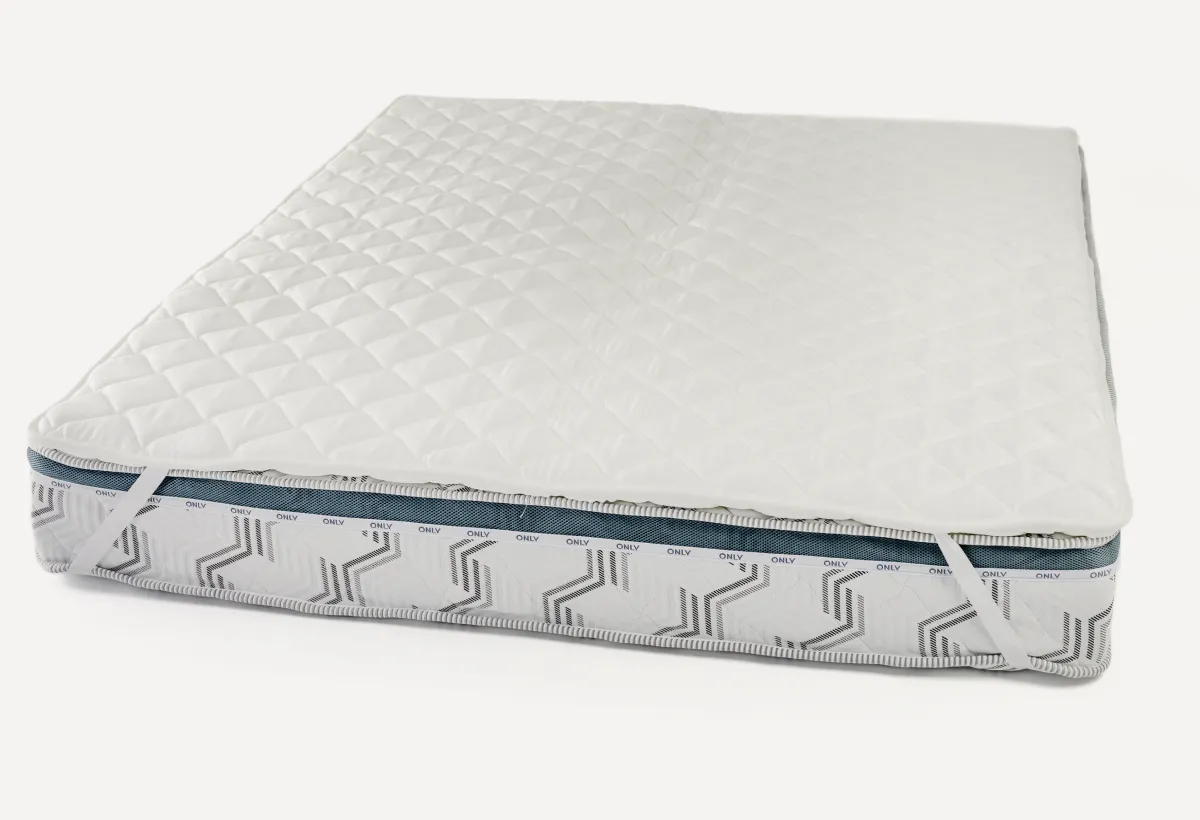 Топпер Tom – бюджетный вариант защиты чехла матраса от преждевременного изнашивания. Представляет собой чехол из прочной жаккардовой ткани, стеганной синтепоном ( это и есть высообъёмное полиэфирное волокно) с обеих сторон.